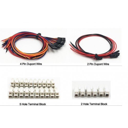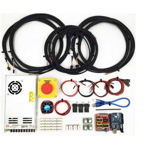 The GRBL Controller Kit for CNC includes a pack of 4 Core shielded cables, 2 Core shielded cables, Ground wire, DC power cables, 5 hole and 2 hole terminal blocks and much more..